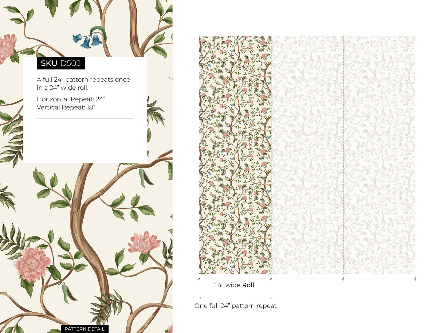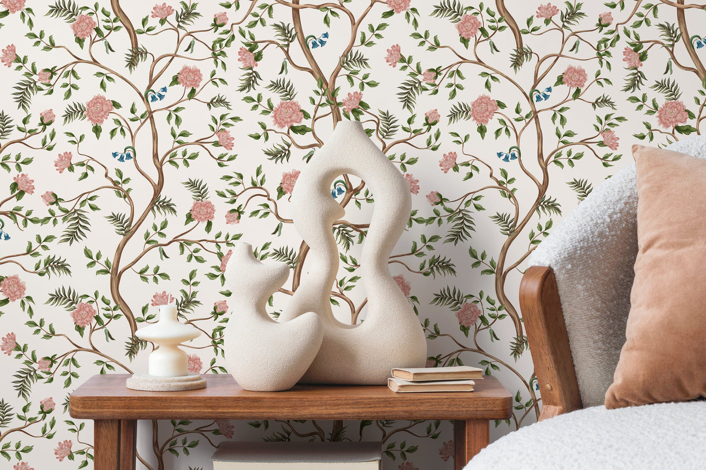 Introduce timeless elegance to your home with our Chinoiserie Wallpaper, featuring a delicate blooming tree motif. This exquisite wall art showcases gracefully winding branches adorned with beautiful flowers in soft pink, blue, and green against a serene backdrop. Perfect for creating a sophisticated focal point, this design brings a classic and artistic touch to any interior design project, transforming your walls into a captivating garden scene. This versatile Chinoiserie wallpaper is an ideal solution for a stunning home decor update.
