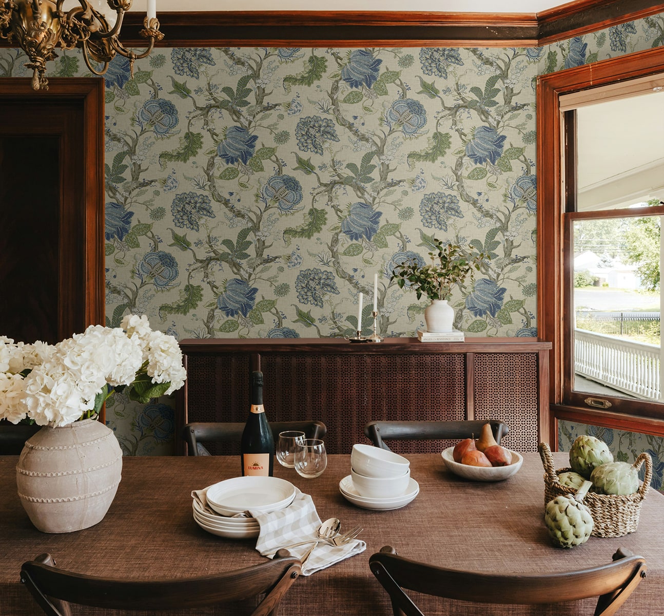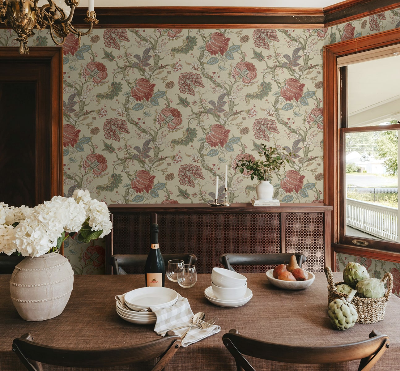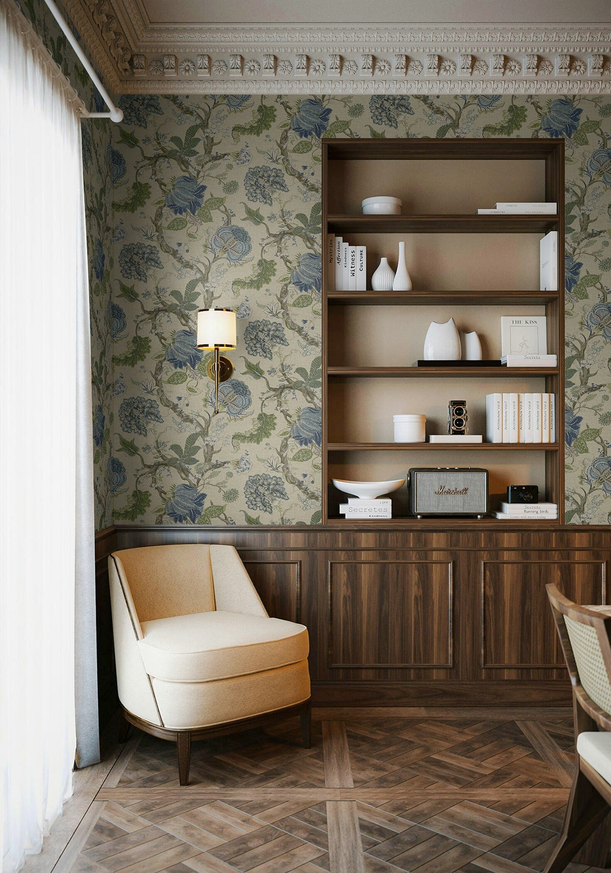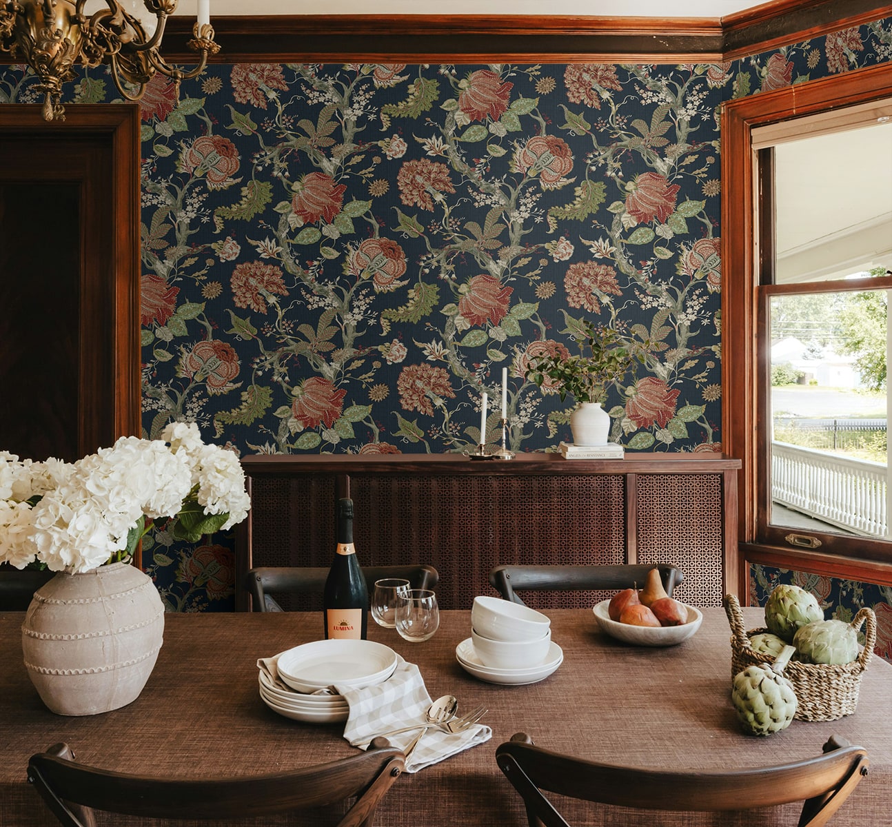 Equally at home in formal dining rooms and cozy sitting areas, this Jacobean Trail Premium Matte Non-Woven peel and stick wallpaper pattern will flourish when paired with rich, earthy tones, natural woods, and antique furnishings. Featuring an engineered non-woven surface, this product delivers rich colors with a fabric-like, PVC-free eco finish.