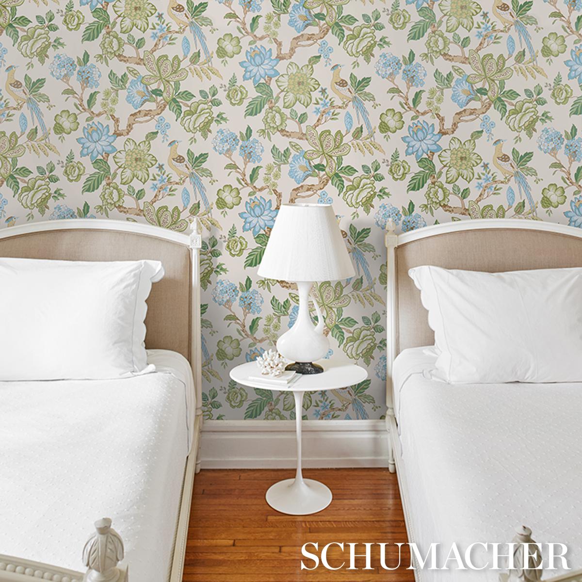 Created in collaboration with Timothy Corrigan, Huntington Gardens is a romantic, painterly take on the classic tree-of-life motif. This exquisite large-scale botanical wallpaper layers easily with other patterns and works beautifully in any room.