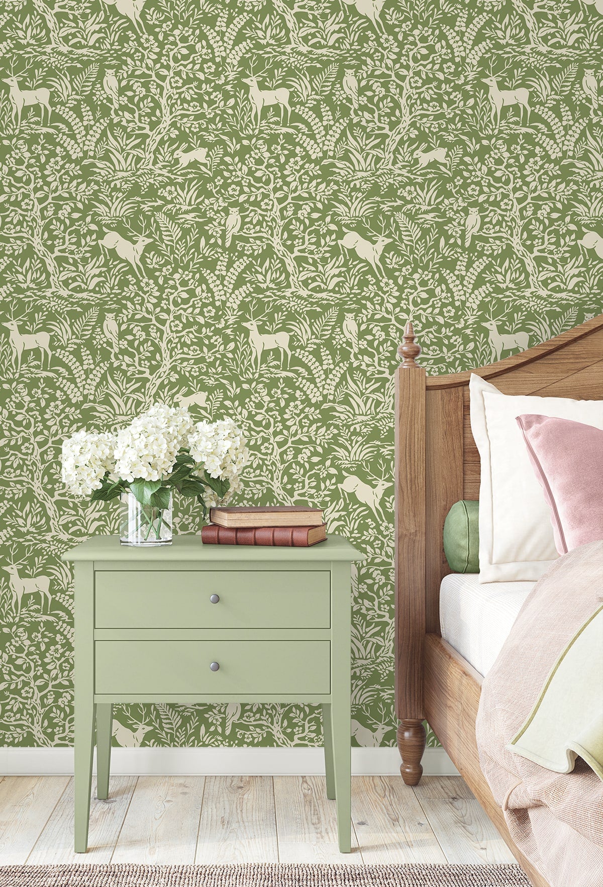 Transform your space into a storybook escape with this Scandi Forest Premium Matte Non-Woven peel and stick wallpaper pattern by Daisy Bennett Designs. Anchored by flowering trees, the rich landscape reveals hidden moments between charming woodland animals. Featuring a breathable and engineered non-woven surface this product delivers rich colors with a fabric-like, PVC-free eco finish. Referred to as the "Queen of Pattern" in the wallcovering industry, Daisy Bennett developed this premier removable wallpaper collection for NextWall by blending inspiration from quaint global marketplaces with a passion for color and design. With the same qualities and durability as permanent wallpaper, each product offers an easy, fresh alternative to decorating with very little commitment!